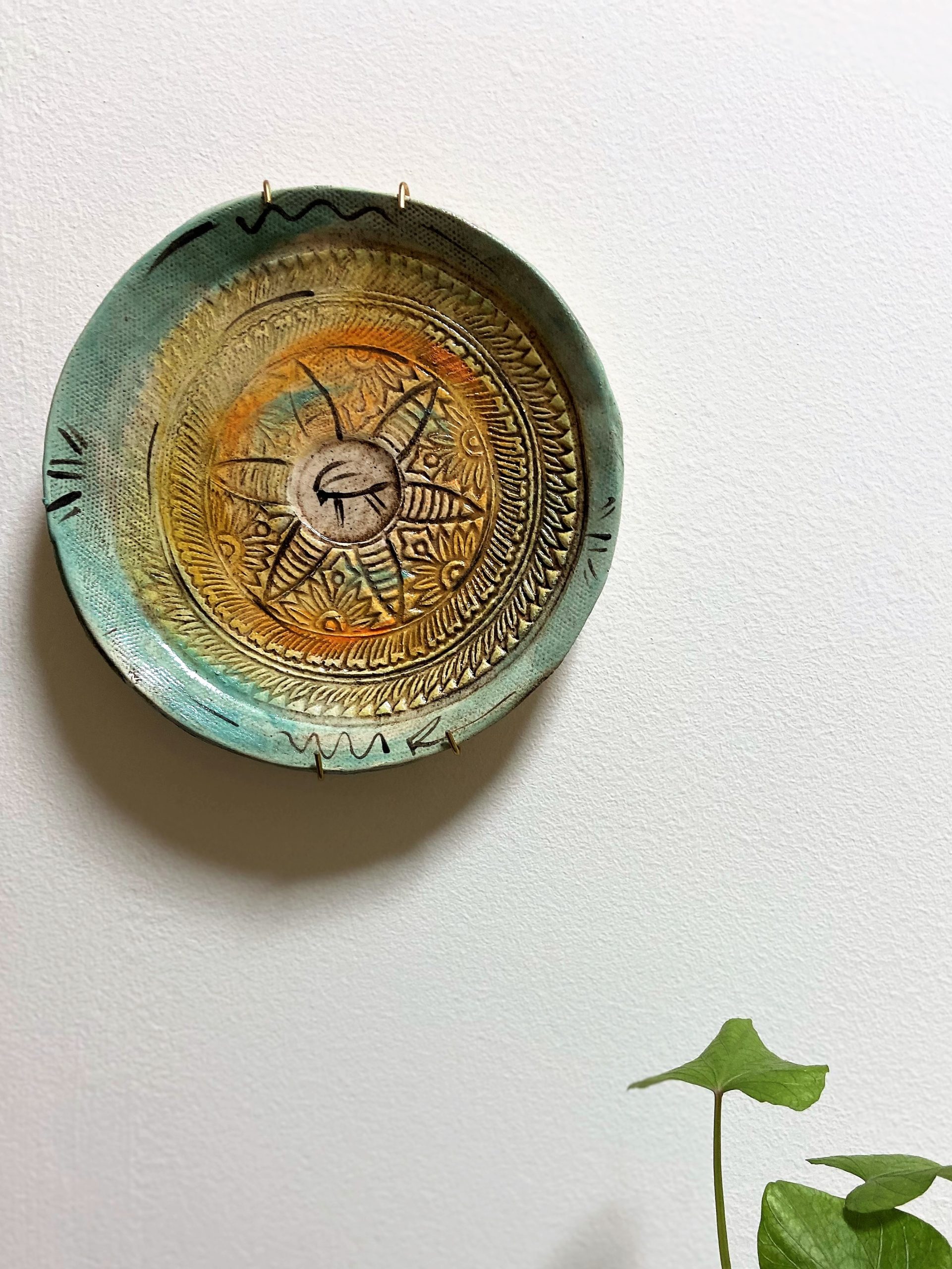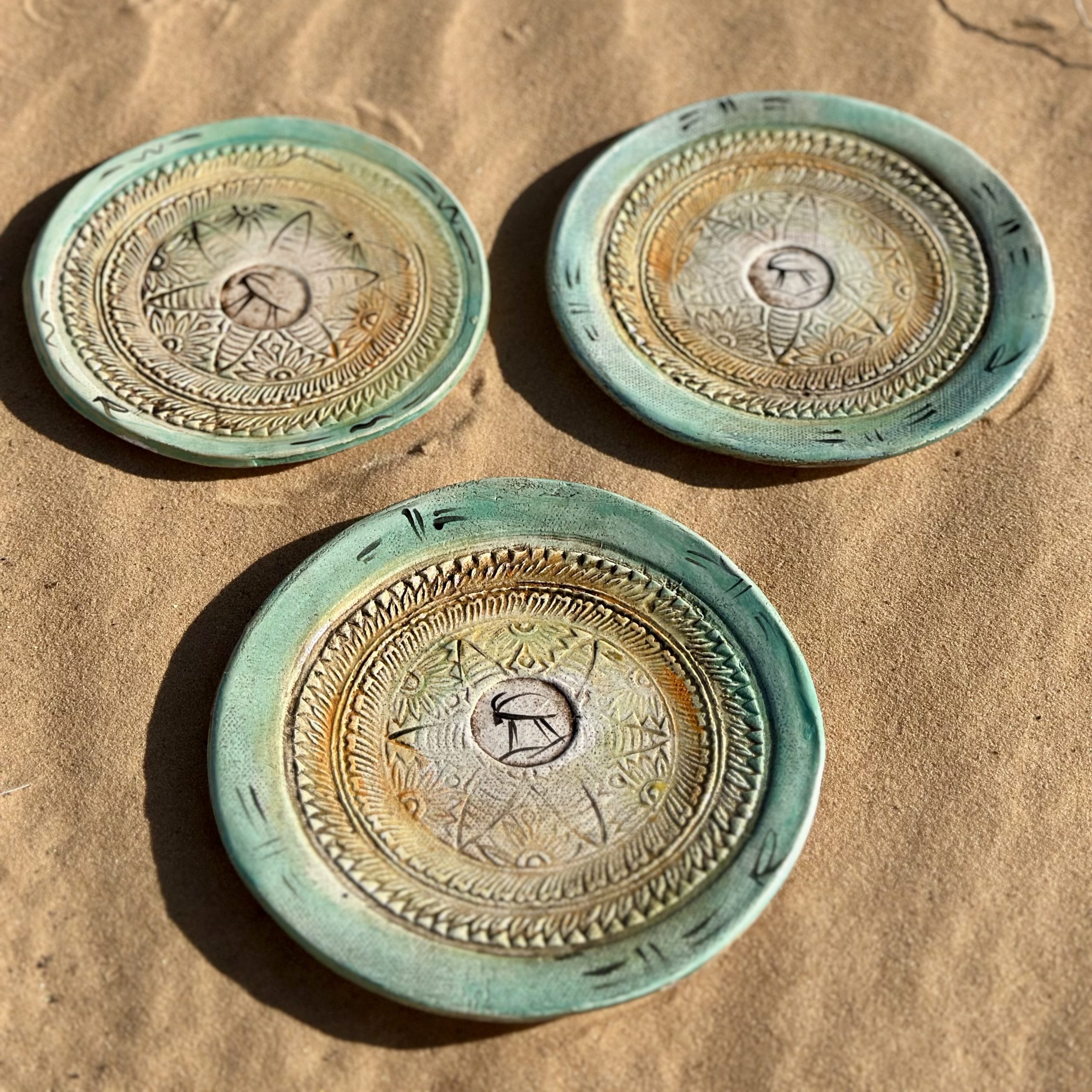 צלחת כפרית קטנה ויפהפייה זו, המעוטרת במנדלה ויעל במרכזה, מושלמת בשבילכם.